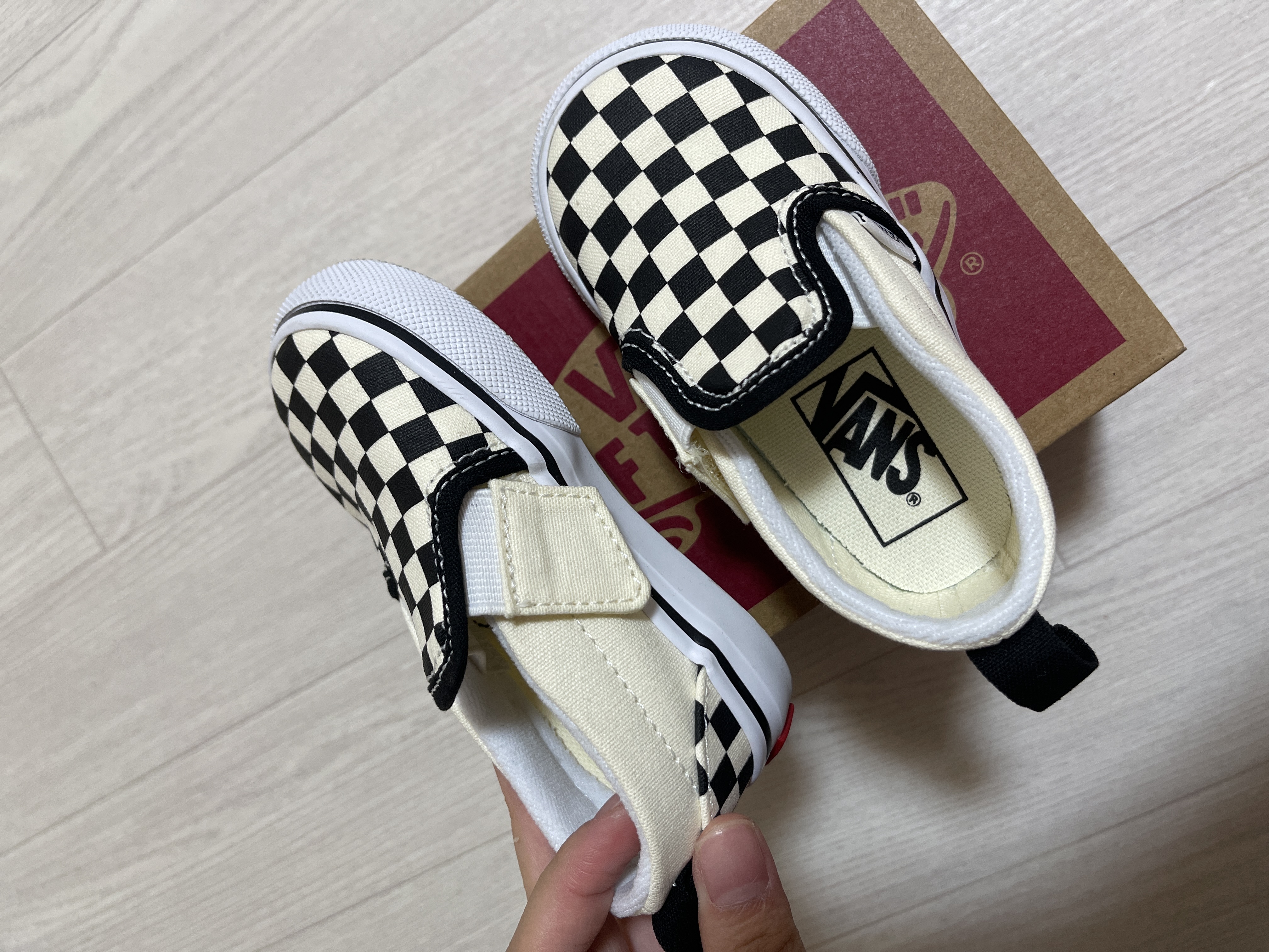 토들러 슬립온 벨크로 체커보드