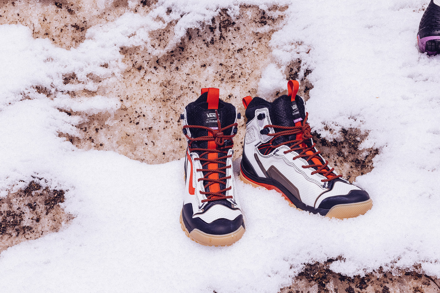 반스의 가장 우수한 기술력이 적용된 전천후 실루엣, 울트라레인지 엑소 하이 고어-텍스 MTE-3는 고어텍스 특유의 방수 코팅, 3M 신슐레이트(Thinsulate) 내한성 보온 소재를 적용해 체열을 보존하면서 발을 쾌적하고 따뜻하게 유지해 준다. 아웃솔의 대담한 트레드 패턴과 반스의 새로운 올트랙™(All-Trac™) 고무 합성 소재를 활용하여 비 오는 도심 거리부터 예측할 수 없는 자연 지형에 이르기까지 모든 지면에서 접지력을 보장하며 발을 보호해 준다. 또한 울트라쿠시™(UltraCush™) 미드솔은 톱 시트 및 몰딩 처리된 EVA 풋베드와 함께 쿠션감과 지지력을 제공한다.