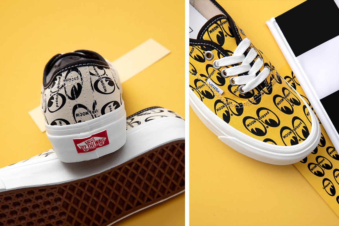 애너하임 팩토리 어센틱 44 DX에는 문아이즈의 시그니처 컬러인 옐로우, 블랙, 화이트와 함께 빈티지 감성의 텍스타일 어퍼, 올오버 문아이즈 프린트 장식, 그리고 브랜드 로고를 선보였다. 고객 맞춤을 통해 개성을 강조하는 두 브랜드의 공통된 유산을 기념하기 위한 올오버 문아이즈 프린트는 1960년대 말부터 1970년대 초 문아이즈에 의뢰한 커스텀 반스 슈즈의 아카이브 제품에 기반한 점이 특징이다. 당시 반스는 고객이 원하는 디자인으로 슈즈를 제작 해주는 맞춤 제품 시장을 개척하여 문아이즈와 같은 지역 업체가 커스텀 반스 신발에 패브릭을 공급할 수 있도록 기여했다.