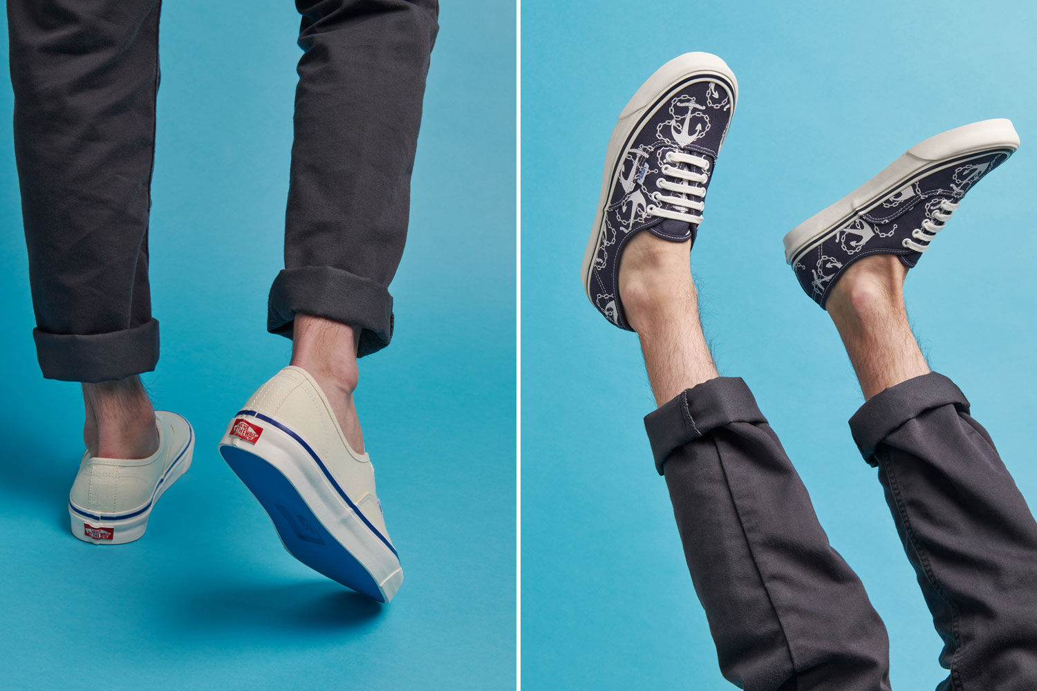새로운 애너하임 팩토리 컬렉션은 반스의 가장 아이코닉한 실루엣 어센틱 44 데크 DX(Authentic 44 Deck DX)의 레드, 화이트, 네이비 앵커 세 가지 컬러웨이로 선보인다. 클래식한 컬러의 레드, 화이트를 더불어 반스가 1970년대 초반에 사용한 커스텀 패브릭에 영감받아 탄생한 네이비 앵커로 구성되었다.