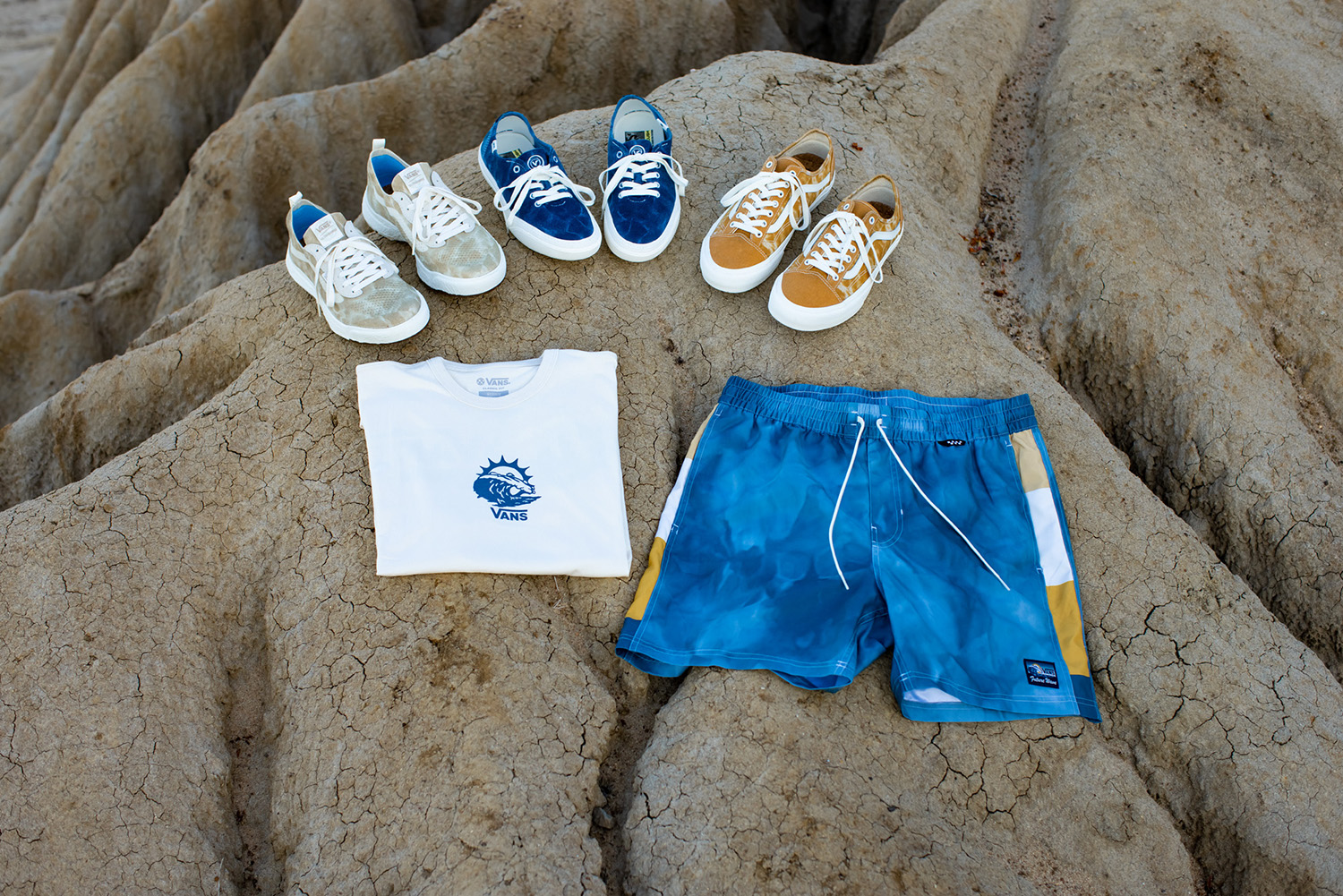 풋웨어 스타일과 함께 VR3 컬렉션은 반스 웨이브 SS 티(Vans Wave SS Tee), 프라이머리 반스 웨이브 엘라스틱 보드숏츠(Primary Vans Wave Elastic Boardshort) 및 반스 웨이브 쉘로우 언스트럭쳐드 캡(Vans Wave Shallow Unstructured Hat)도 함께 선보인다. 이번 컬렉션의 모든 어패럴에는 태양, 모래, 파도와 같은 서퍼들의 해변에서 영감을 얻은 컬러가 적용됐다.