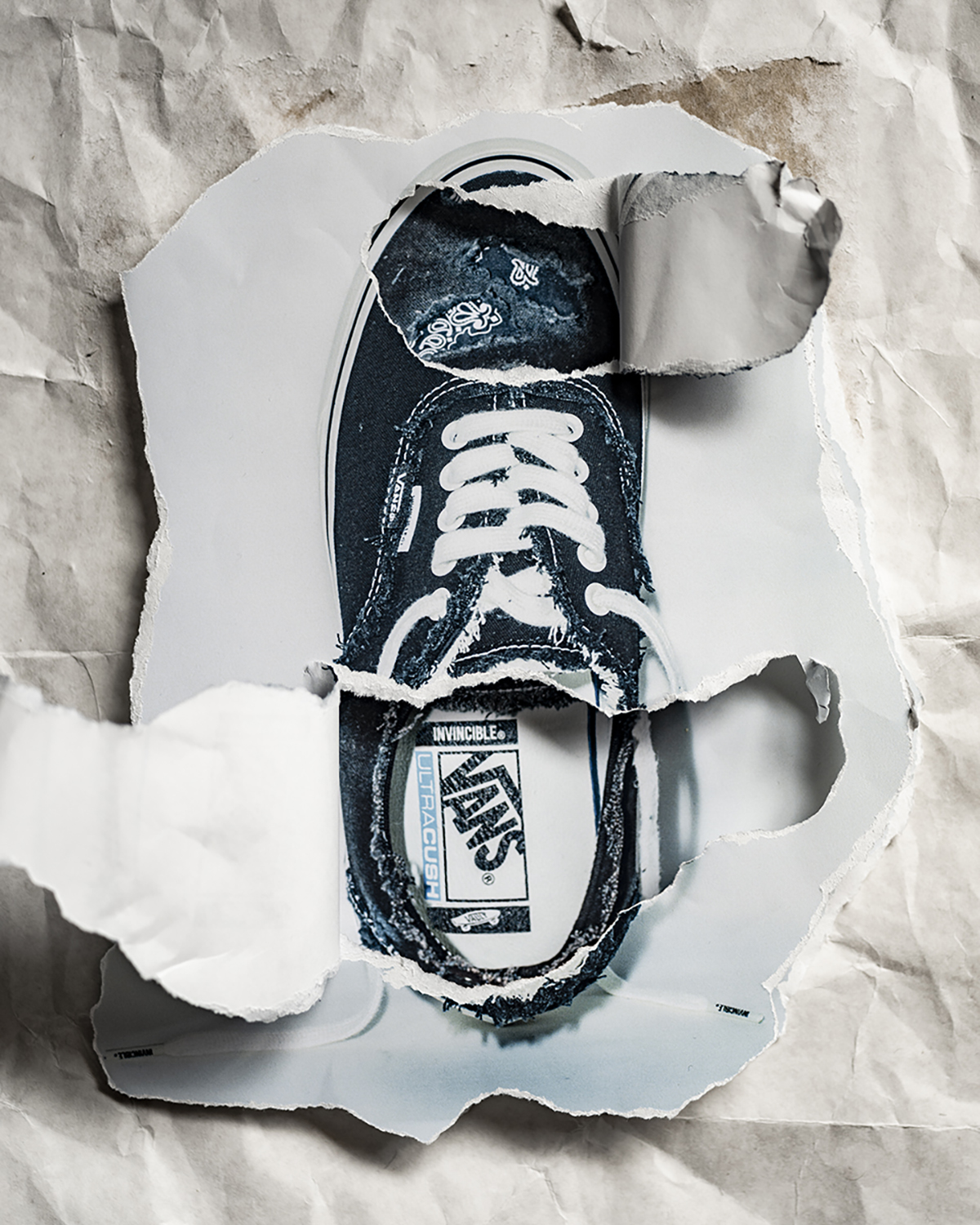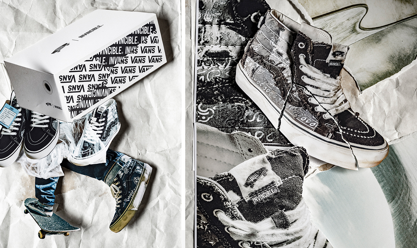 인빈시블®은 다양한 브랜드와의 협업을 통해 확고한 스타일을 구축해 나가는 부티크 샵이다. 낡고 찢어져 스케이트보딩으로 오래 착용한 듯한 디자인은 반스의 헤리티지에서 영감받아 페이즐리 패턴에 패치워크 기법을 적용한 것이다. 반스 어센틱(Authentic Frayed VLT LX), 스케이트-하이 리이슈(SK8-Hi Reissue PW Frayed VLT LX) 2종으로 구성된 이번 컬렉션은 블랙 컬러로 출시되며, 착용 후 마모되거나 미끄럼 방지용 그립테이프 위를 몇 번 지나게 되면 인빈시블®과 반스 모노그램이 드러나면서 진정한 나만의 신발이 완성된다. 두 실루엣 모두 어퍼 전체가 워싱 처리되어 빈티지한 느낌을 주며 스케이트보딩과 스케이터 ‘날리’의 성장 과정에 경의를 표한다.